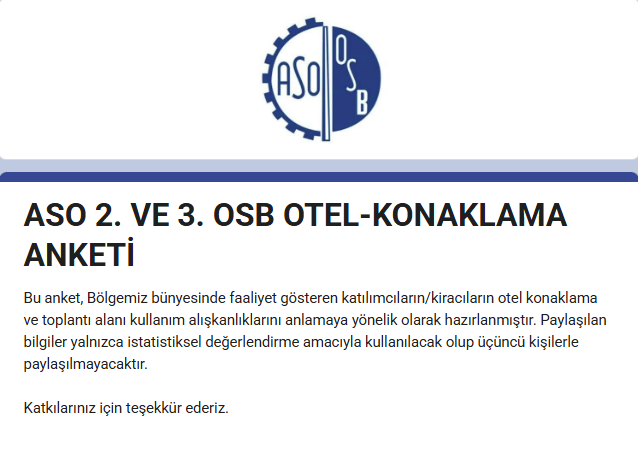 ASO 2. VE 3. OSB OTEL-KONAKLAMA ANKETİ