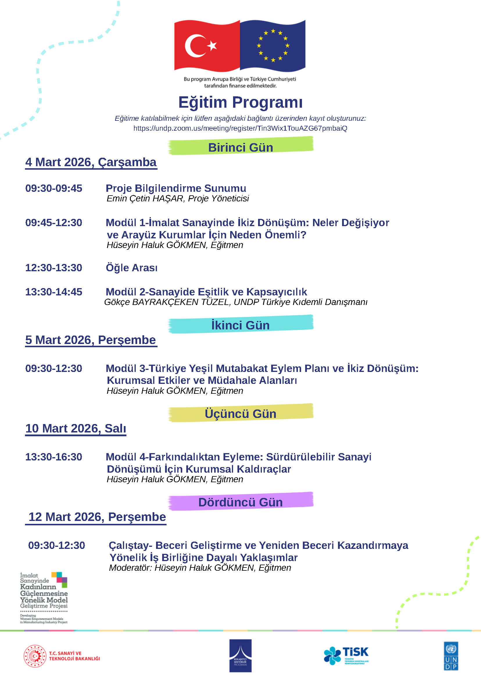 Programın kapsamı; çevrimiçi formatta sunulacak dört eğitim modülü ile bu modüllerin üzerine